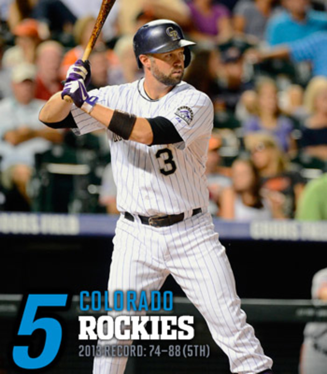 The Rockies are coming off two straight last-place finishes, and their pitching staff ranked last in the NL in ERA (4.44) and strikeouts (1,064) in 2013. SP Jorge De La Rosa (16–6) and JhoulysChacin (14–10) were the only hurlers to have solid years. Colorado didn't add much to its staff aside from 41-year-old closer LaTroy Hawkins (13 saves).