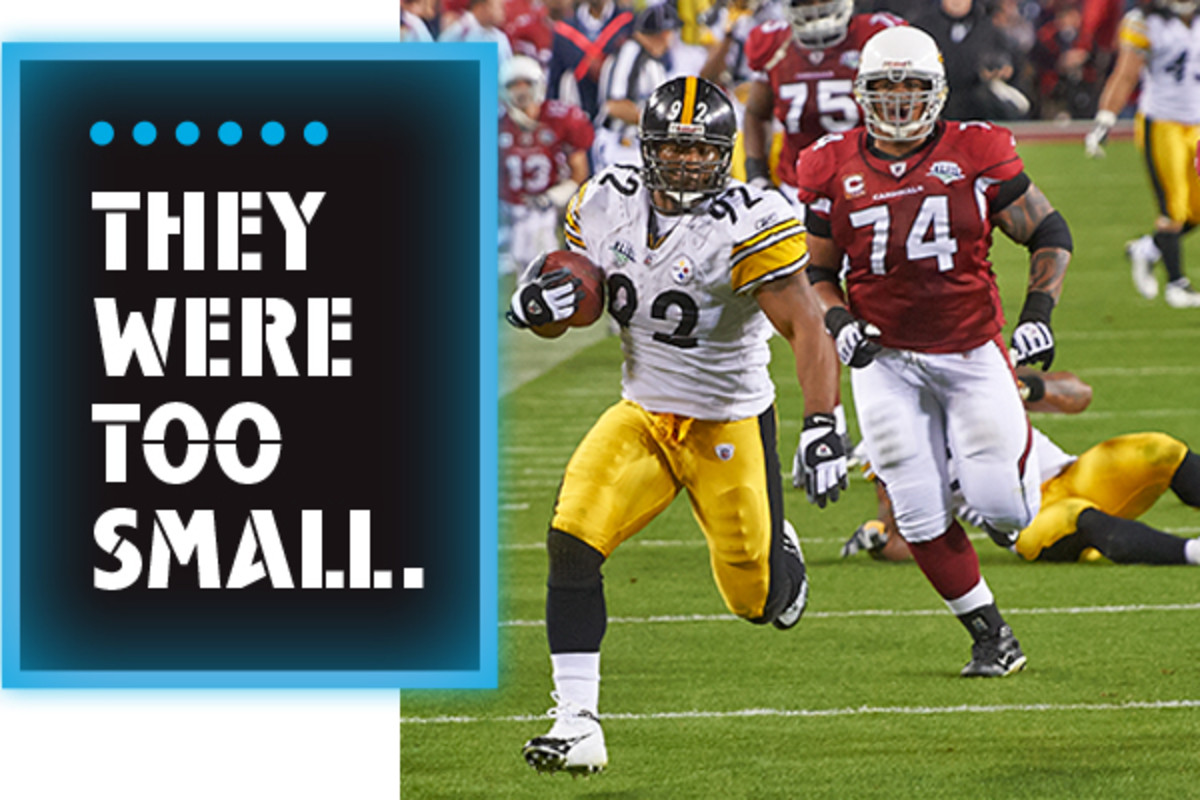 The simple fact is that NFL football is a physical sport played by a lot of huge men, especially on defense. Heading into the 2002 draft, 6-foot, 242-pound Kent State linebacker James Harrison was considered too little to play in the NFL. In fact, even after being signed as an undrafted free agent by the Pittsburgh Steelers, he was released by the team and later cut by the Baltimore Ravens. It wasn't until '04 that Harrison got any real playing time in the NFL, and he wasn't a starter until '07. Once he got onto the field, though, his small stature wasn't an issue anymore. Among the highlights: Harrison was the NFL's Defensive Player of the Year in 2008, twice a first-team All-Pro, and he had the longest play in Super Bowl history when he returned an interception 100 yards for a touchdown in Super Bowl XLIII.
