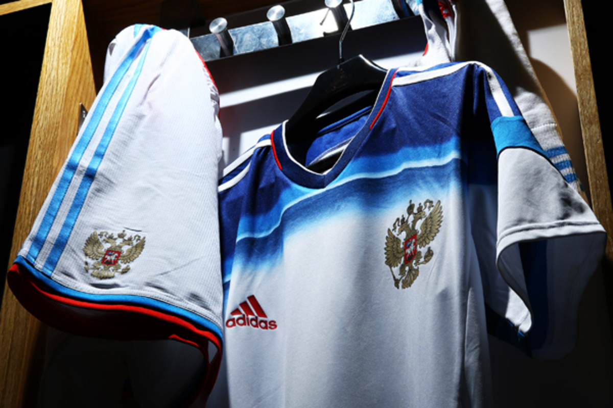 Last Thursday, the rolled out away kits for four teams: Argentina, Russia, Germany, and Spain. Each kit was built with lightness in mind (Brazil can get pretty warm), and they feature design elements native to their national heritage. The Russian look, for example, is inspired by the Soviet astronauts of the 1960s, and Spain draws on the electric nightlife of the country's biggest cities. The Germany kit is especially cool. It's black-and-red stripes, rugby collar, and buttons set it apart from the rest of the national looks.