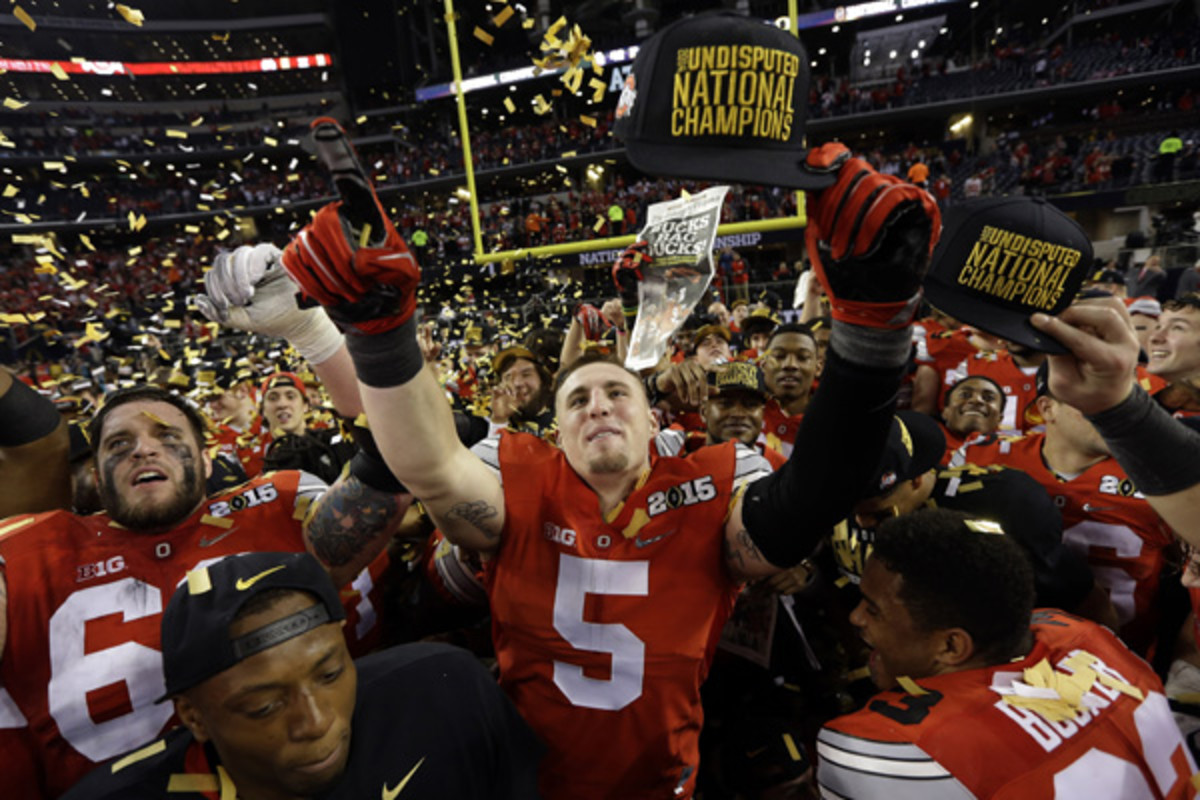 The Buckeyes overcame two injured Heisman contenders and one awful 35-21 loss to Virginia Tech to win their first national title since the 2002 BCS championship. In the BCS, the early slip to the Hokies could have pretty much eliminated the Buckeyes for the championship race.