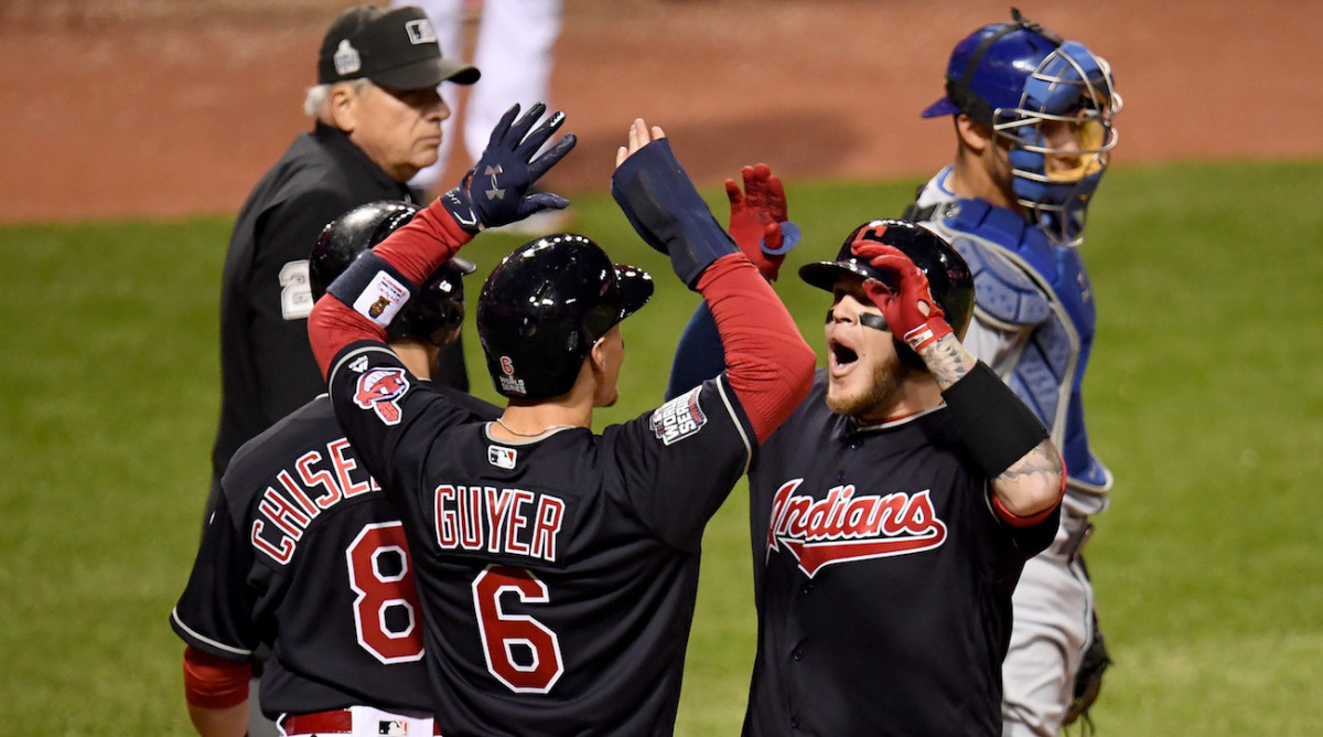 Francisco Lindor singled to center for the Tribe’s first hit of the game and stole second as the Tribe’s running game heated up against Jon Lester, who very rarely attempts pickoffs. A rattled Lester issued free passes to Carlos Santana and Mike Napoli. With fans already holding their breaths five outs into the Series, Jose Ramirez poked an infield single to put Cleveland up 1–0. Brandon Guyer was hit by a pitch shortly thereafter, and the Tribe found themselves up 2–0, just like that.