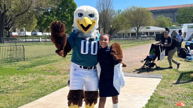 For me, the area that was the most entertaining was the Physical EGG-ucation zone. I felt right at home perfecting my swing in the MLB Play Ball section and shooting a few buckets in the NBA zone. The highlight of the day was when I was able to snap a few photos in the NFL zone with Swoop (the Philadelphia Eagles mascot) and the longest-tenured member of the Eagles, Brandon Graham!