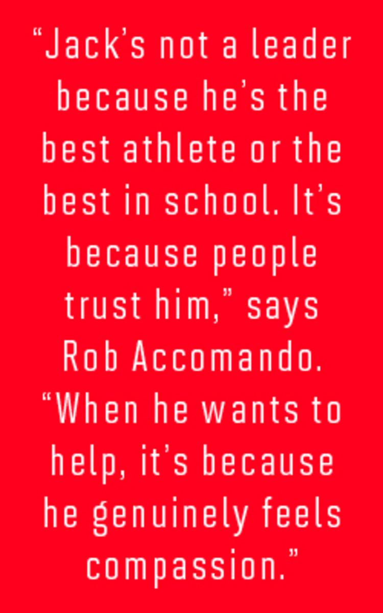In August 2012, he was looking forward to another football season. He was small, weighing only about 115 pounds, but he more than made up for it with his smarts, toughness, and effort. The grueling summer workouts were over, and his team had a Saturday-morning walkthrough practice before the season opener the next day. Coaches called for Green 20, a trap play, with Jack set to block (or at least get in the way of) a 250-pound teammate. The ball was snapped, the two collided. Jack crashed to the ground.